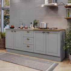 Cozinha Compacta 4 Portas 3 Gavetas Emily Cinza/Marrom
