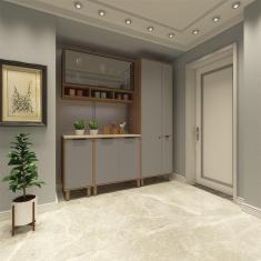 Cozinha Compacta 4Peças Balcões Aéreos C Vidro Luciane Móveis Vanilla-cinza Puro