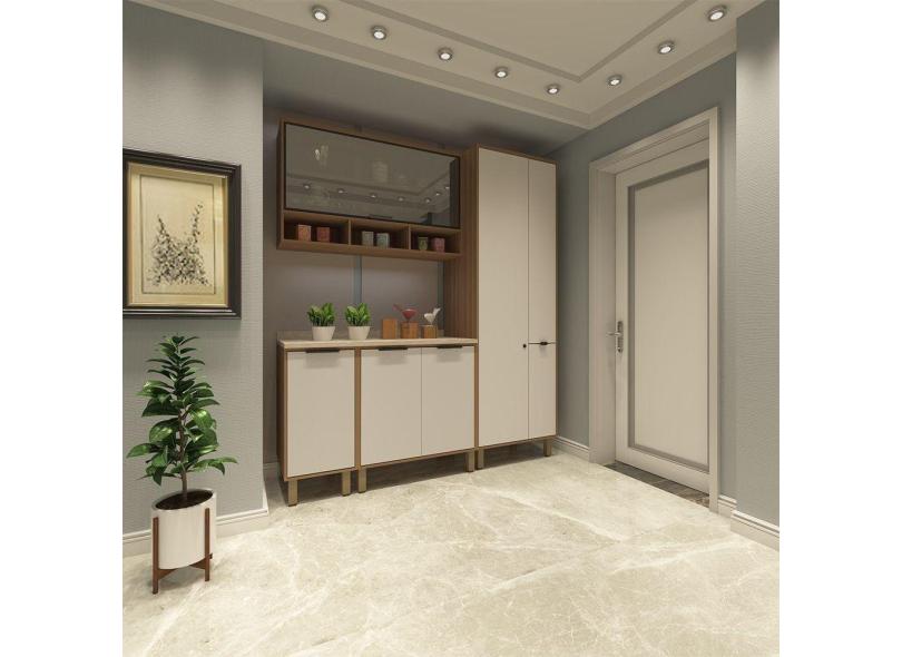 Cozinha Compacta 4Peças Balcões Aéreos C Vidro Reflecta E Tampo Aspen Luciane Móveis Vanilla-beige