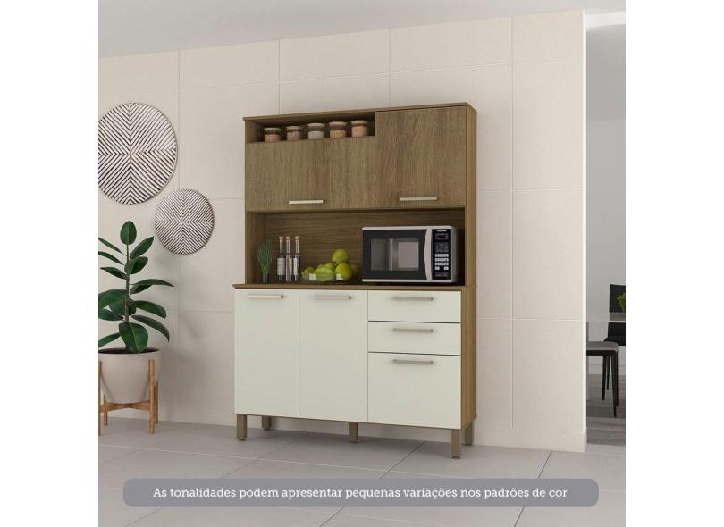 Cozinha Compacta 5 Portas E 2 Gavetas Com Tampo Luciane Móveis Carvalho Avelã Arenas