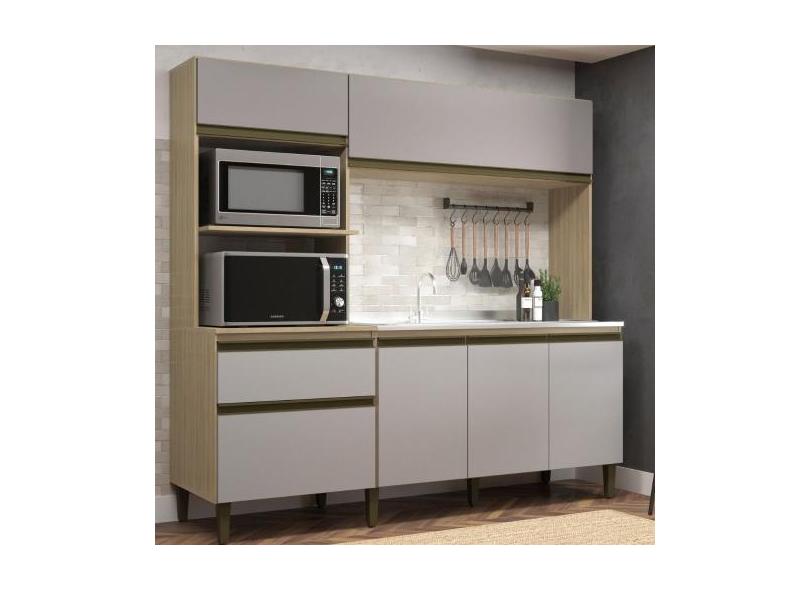 Cozinha Compacta 6 Portas 1 Gaveta Vitoria J Carvalho, Dourado/Fume