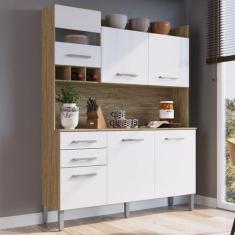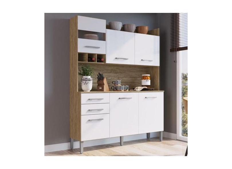 Cozinha Compacta 6 Portas 2 Gavetas Ac6200 Wood/Branco - Decibal Móvei