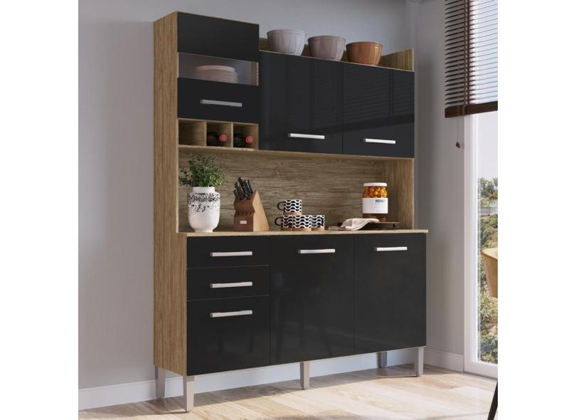 O menor preço encontrado no Brasil para Cozinha Compacta 6 Portas 2 Gavetas Ac6200 Wood/Preto - Decibal Móveis atualmente é R$ 770,90.