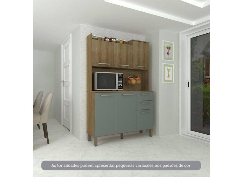 Cozinha Compacta 6 Portas E 2 Gavetas Com Tampo Luciane Móveis Carvalho Avelã Cinza Supremo