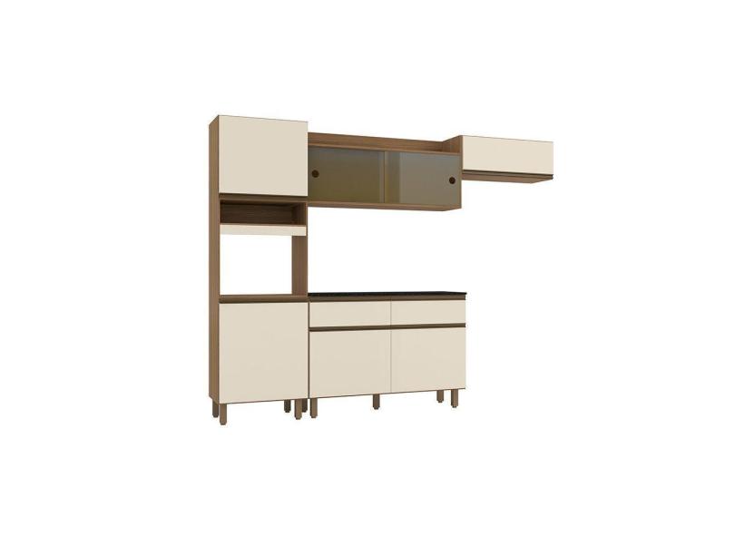Cozinha Compacta 7 Portas 2 Gavetas Com Balcão Tampo Porto Carvalho Com Off White