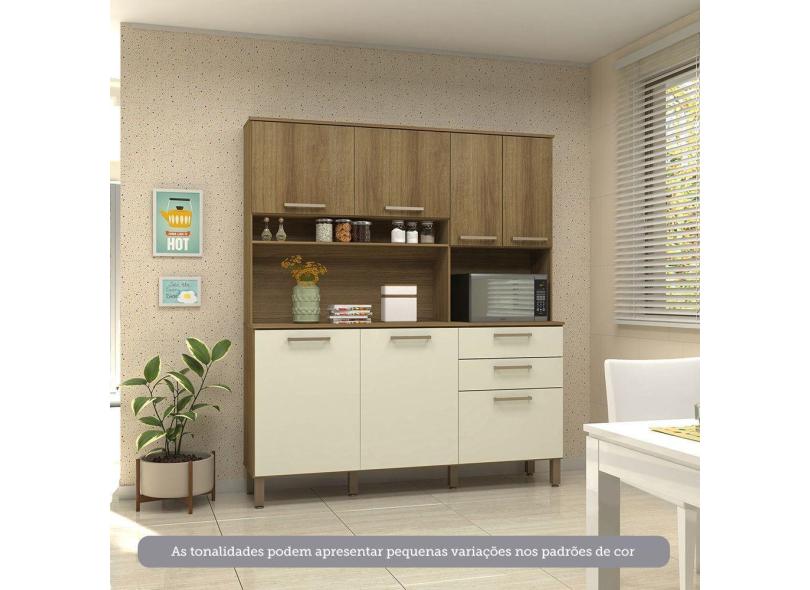 Cozinha Compacta 7 Portas E 2 Gavetas Com Tampo Luciane Móveis Carvalho Avelã Arenas