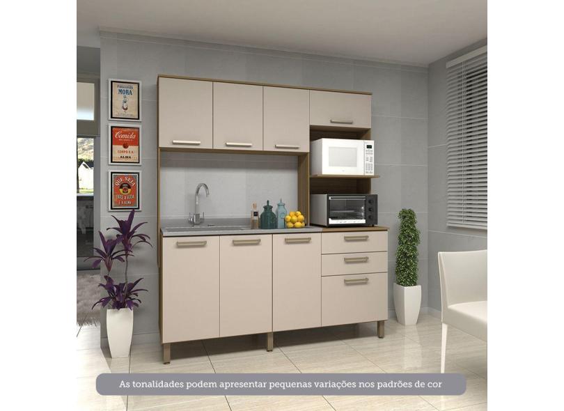 Cozinha Compacta 8 Portas E 2 Gavetas Luciane Móveis Carvalho Cinnamon