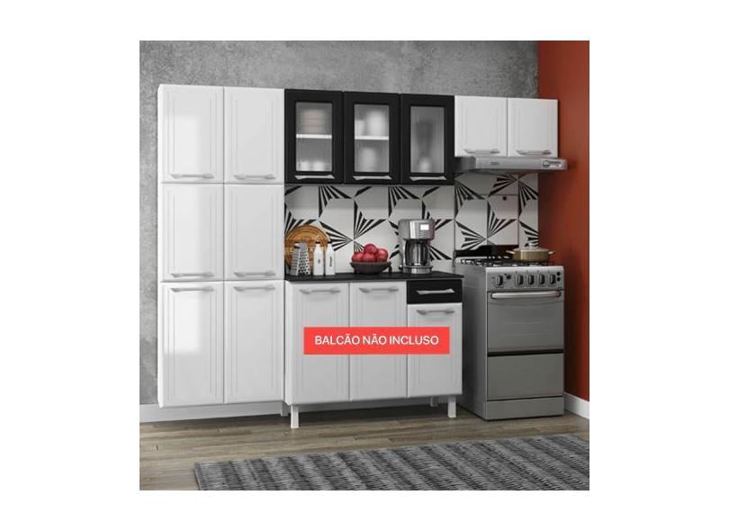 Cozinha Compacta Aço Topázio 11 Portas 6 Prateleiras Branco/Preto - Te