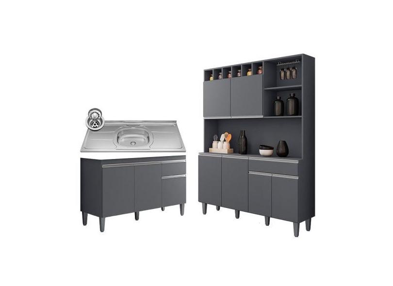 O menor preço encontrado no Brasil para Cozinha Compacta Alice E Balcão Gabinete Com Pia Tatiane 120cm Cinza - atualmente é R$ 1.261,64.