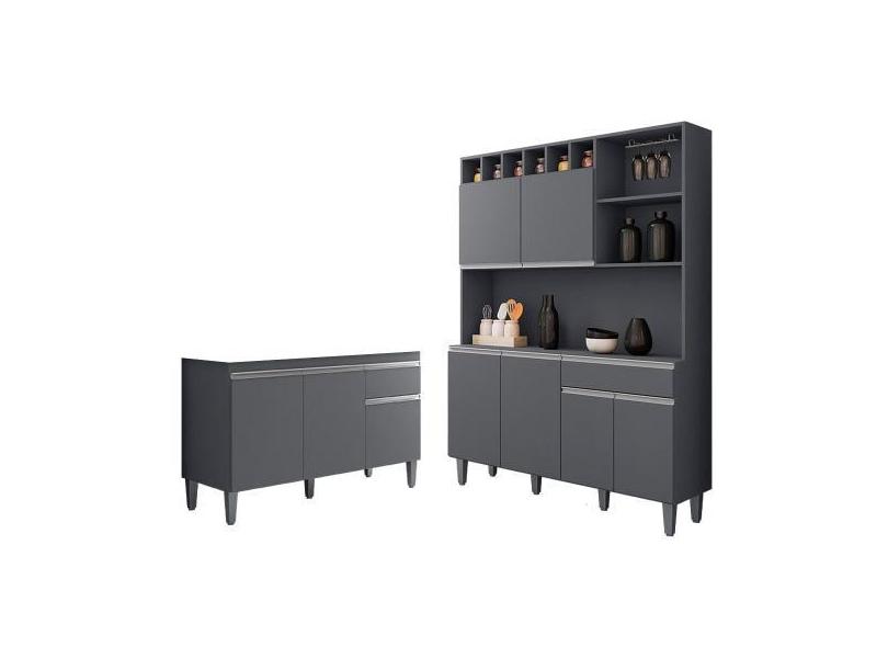 Cozinha Compacta Alice E Balcão Gabinete Sem Tampo Tatiane 120cm Cinza