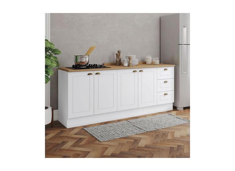 Cozinha Compacta Americana 4 Portas 3 Gavetas 100% Mdf Branco Nature C