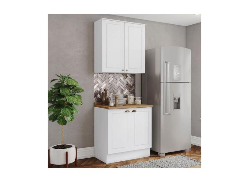 Cozinha Compacta Americana 4 Portas 3 Prateleiras 100% Mdf Branco/Natu