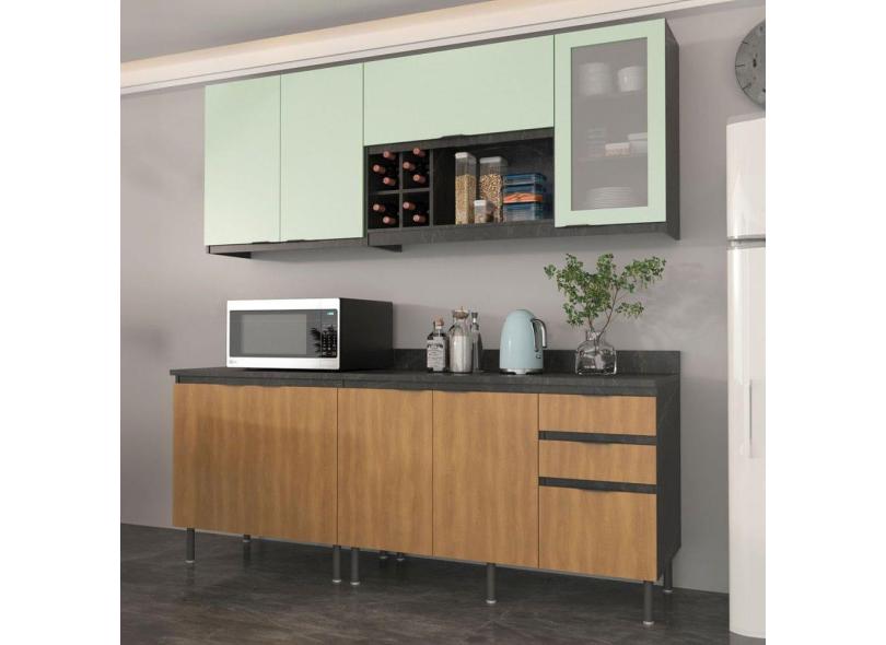 Cozinha Compacta Azaleia 8 Portas e 3 Gavetas com Divisor de Talheres Mármore Lunar/Freijó/Verde Mar - Tecnomobili