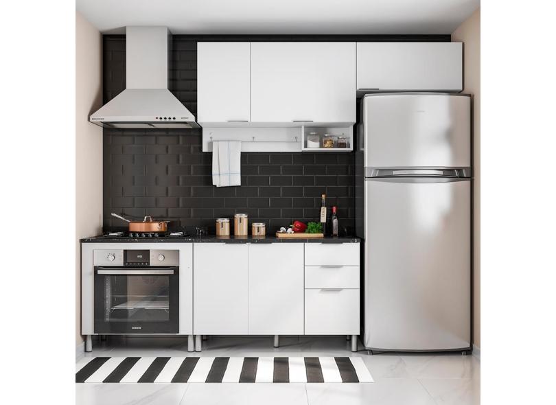 Cozinha Compacta Bartira Rubi com 5 Portas, 3 Gavetas e 3 Prateleiras - 260,2cm de largura - Branco