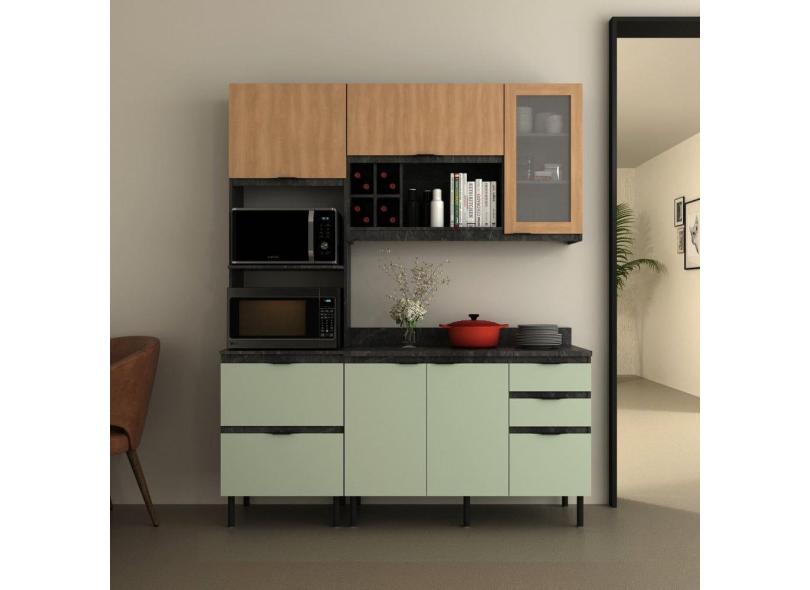 O menor preço encontrado no Brasil para Cozinha Compacta Begônia 180cm 3 Peças, 6 Portas e 4 Gavetas com Divisor de Talheres e Tampo Cz1203 Mármore Lunar/Verde Mar/Freijó atualmente é R$ 1.416,64.