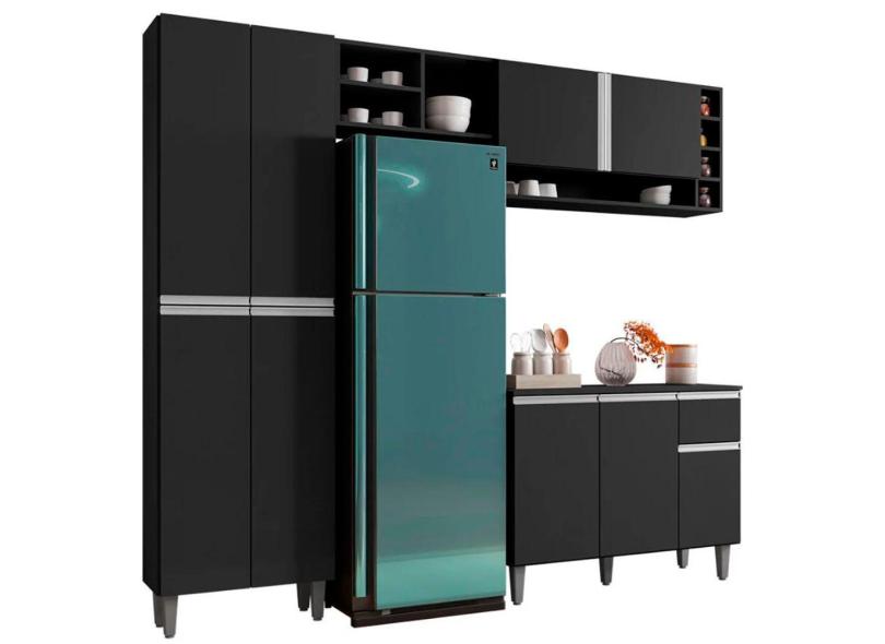 Cozinha Compacta Bel Balcão 3 Portas + Paneleiro 4 Portas Preto - Bela Móveis