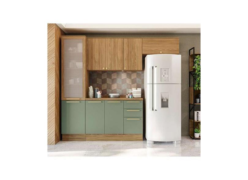O menor preço encontrado no Brasil para Cozinha Compacta Botanic com Tela 8 PT 3 GV Nogueira e Verde - Kappesb atualmente é R$ 3.269,34.