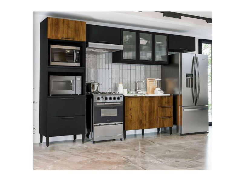 cozinha compacta canelone com vidro 9 pt 4 gv preta e alamo