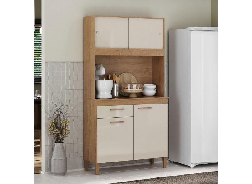 Cozinha Compacta Ceara 4 Portas 1 Gaveta Canelato Rustico/Natural Off White - Atualle Móveis
