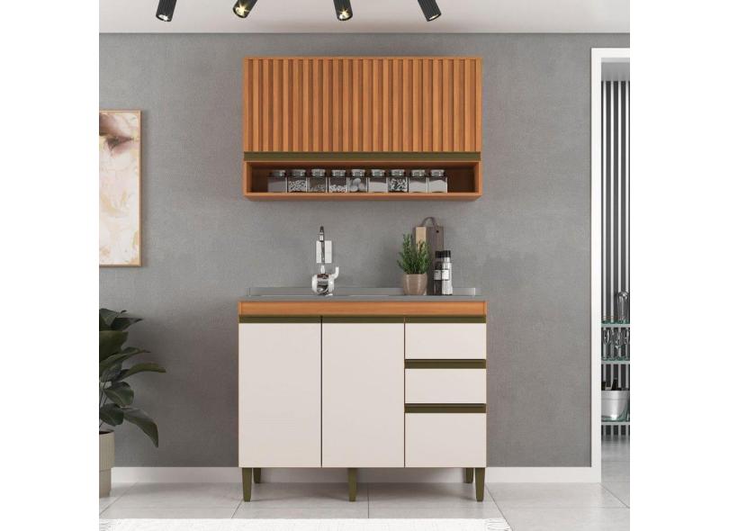 Cozinha Compacta Cecilia 3 Portas 3 Gavetas Ripado Freijó/Off White - Jcarvalho