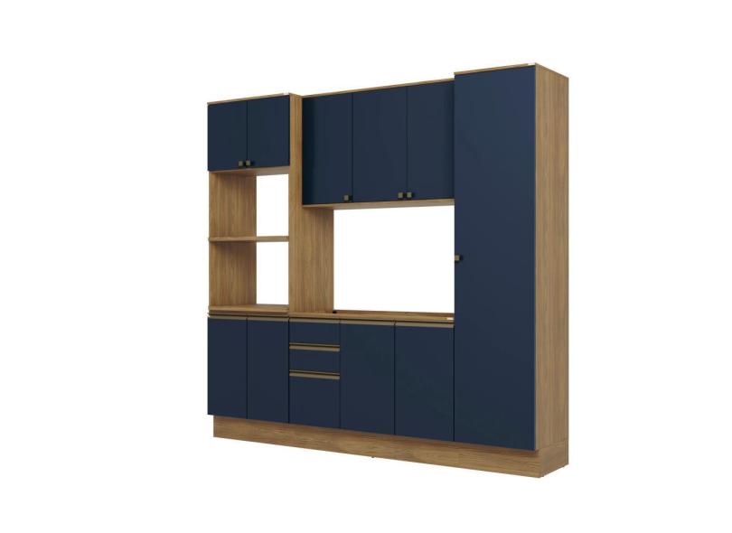 O menor preço encontrado no Brasil para Cozinha Compacta Celeste Kappesberg 100% mdf Nogueira/Azul 240cm atualmente é R$ 2.249,99.