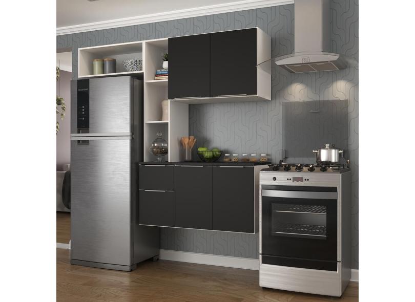 Cozinha Compacta com Armário e Balcão MP2006 Sofia Multimóveis Branca/Preta