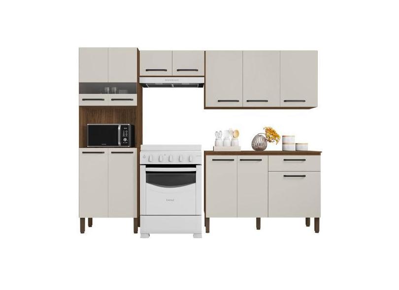 Cozinha Compacta Com Balcão 251cm Louis K02 Nogueira/Off - Mpozenato