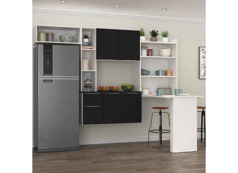 Cozinha Compacta Com Mesa Dobrável Multimóveis Branca/Preta