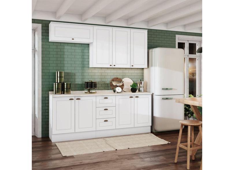 Cozinha Compacta com Tampo 4 Peças 8 Portas 3 Gavetas Emily Espresso Móveis Branco HP/Calcare