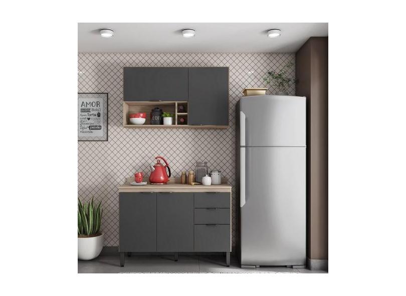 Cozinha Compacta com Tampo FI0012 Firenza Demobile, Avena/Grafito