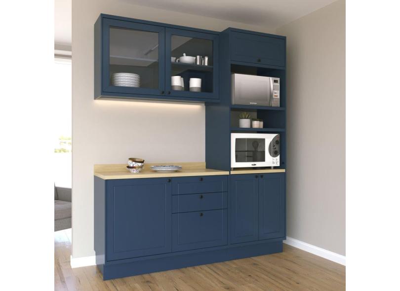 Cozinha Compacta Com Vidro 3 Peças 6 Portas 3 Gavetas Sevilha Azul Órion / Carvalho Marrom