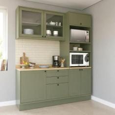 Cozinha Compacta Com Vidro 3 Peças 6 Portas 3 Gavetas Sevilha Verde Hill / Carvalho Marrom
