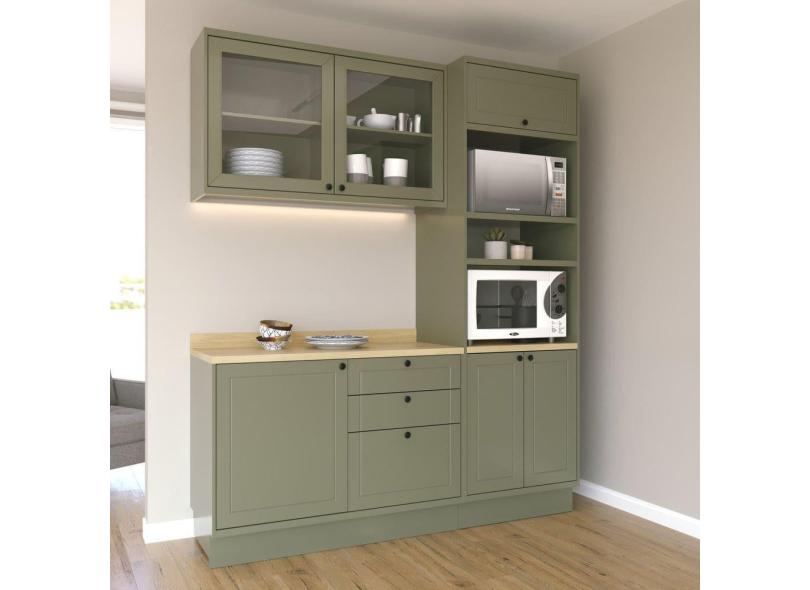 Cozinha Compacta Com Vidro 3 Peças 6 Portas 3 Gavetas Sevilha Verde Hill / Carvalho Marrom