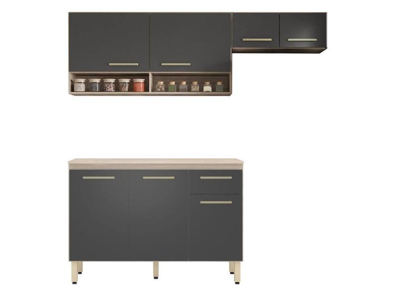 Cozinha Compacta Dama 3 Peças Balcão 120cm Avena Grafito Com Tampo Mdp - Demóbile Avena Grafito