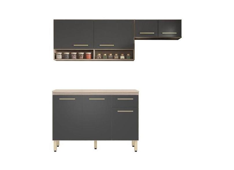 Cozinha Compacta Dama Aéreos E Balcão Avena Grafito - Demóbile - Demob