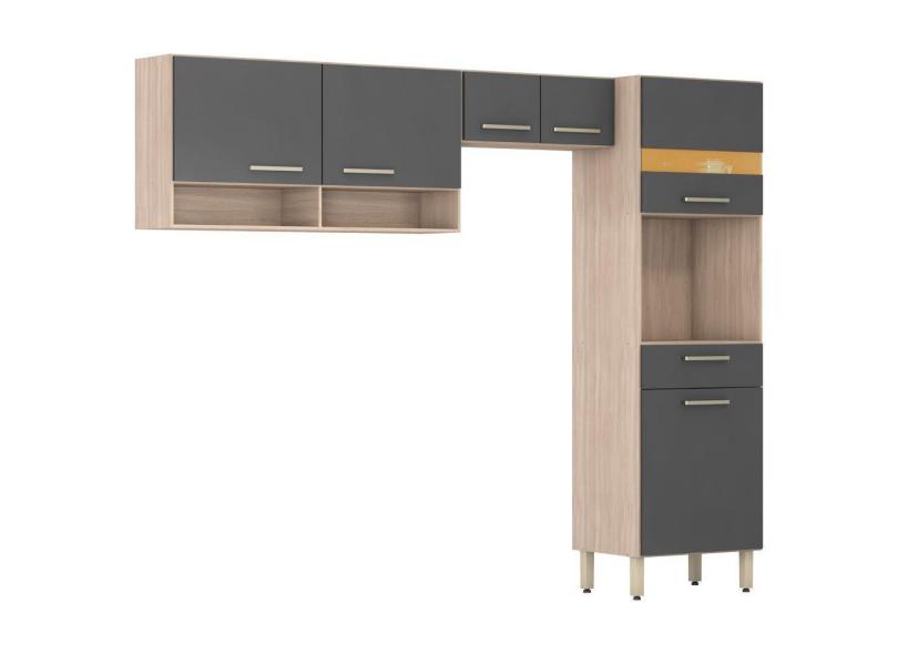 Cozinha Compacta Dama Com 3 Peças Cor Avena Grafito Demóbile