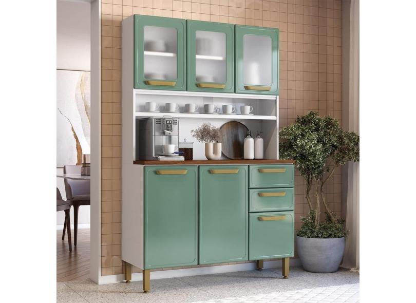 Cozinha Compacta De Aço 6 Portas 3 Vidros 2 Gavetas Bertolini Verde Branco