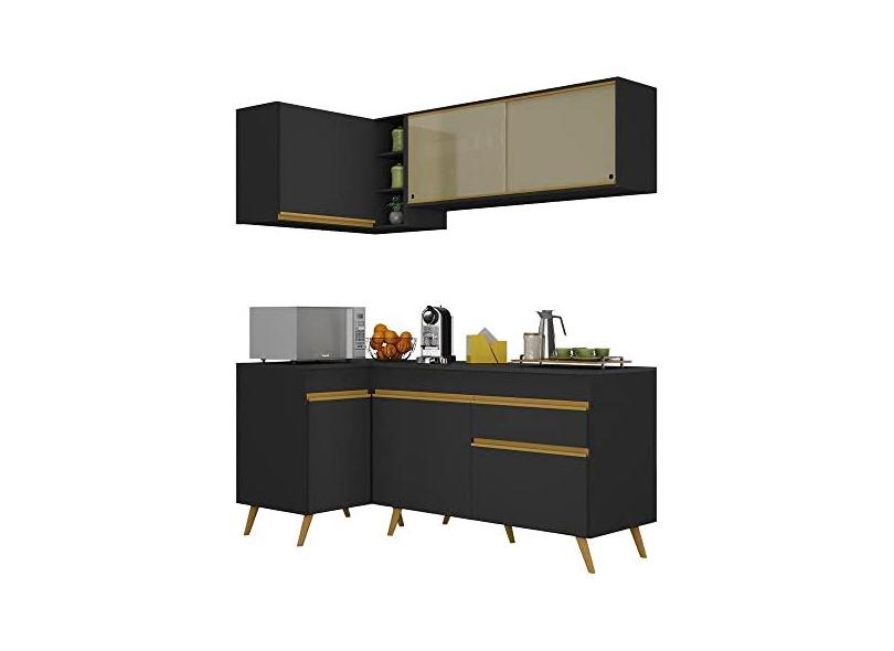 Cozinha Compacta de Canto Veneza Gb Multimóveis Mp2056 com Armário e Balcão Preta