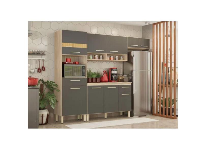 Cozinha Compacta Demóbile Dama com Balcão - Nicho para Micro-ondas 9 Portas 2 Gavetas / Avena Grafito