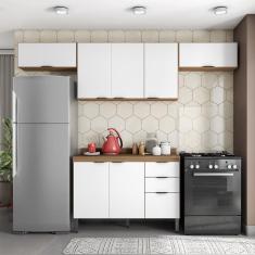 O menor preço encontrado no Brasil para Cozinha Compacta Demóbile Firenze com 7 Portas, 2 Gavetas e 3 Prateleiras - 260cm de largura - Amêndola/Branco atualmente é R$ 1.099,00.