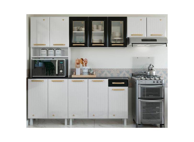Cozinha Compacta Diamante 4 (2 Armários1 Balcão1 Paneleiro) c/ Kit Branco/preto - Telasul