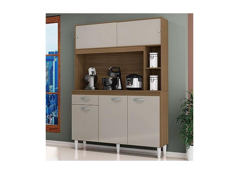 O menor preço encontrado no Brasil para Cozinha Compacta Duda 5 Portas 1 Gaveta Castanho/Off White - Poquema atualmente é R$ 610,90.