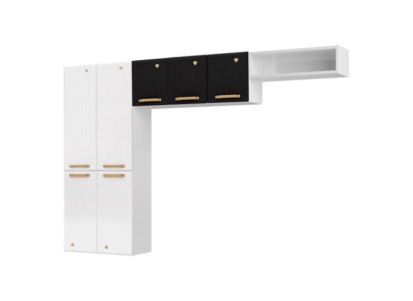 Cozinha Compacta Em L Diamante Smart Com 7 Portas 818409 Branco Com Preto