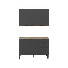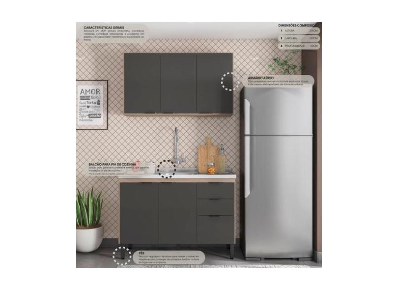 Cozinha Compacta Firenze 6 Portas 2 Gavetas Avena Touch/Grafito - Demó