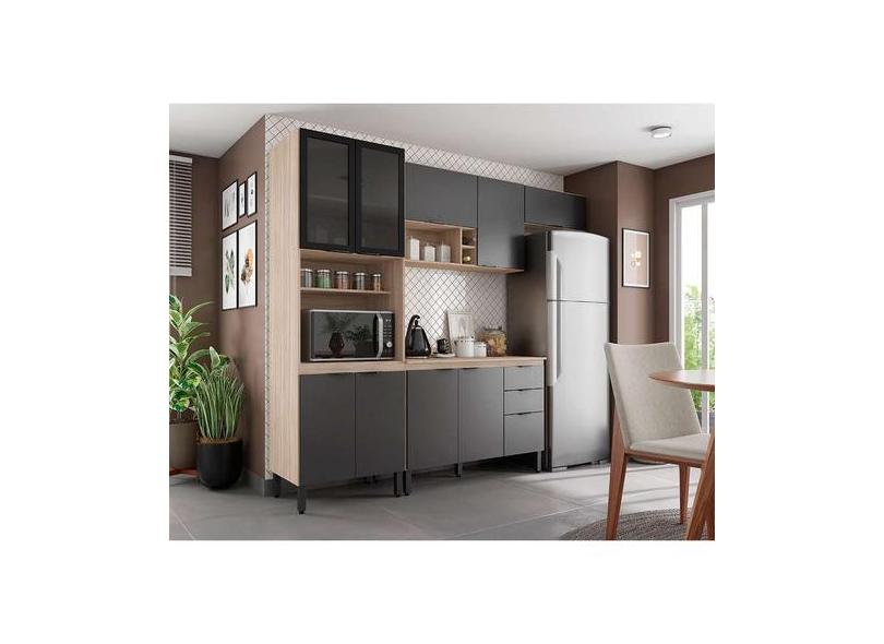 Cozinha Compacta Firenze I 10 Pt 2 Gv Avena E Grafito - Demóbile