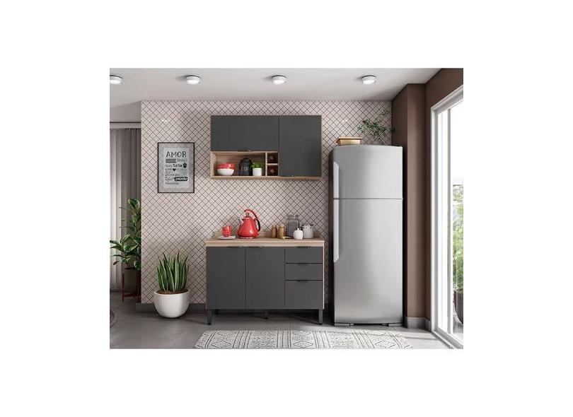Cozinha Compacta Firenze II 5 PT 2 GV Avena e Grafito - Demóbile