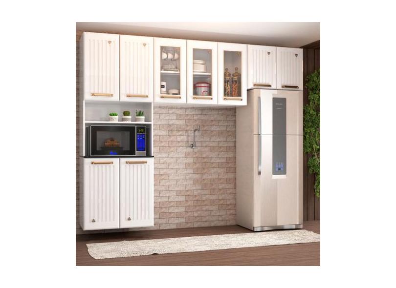 Cozinha Compacta Itajúba Suspensa 9 Portas Com Vidro Branco - Panorama