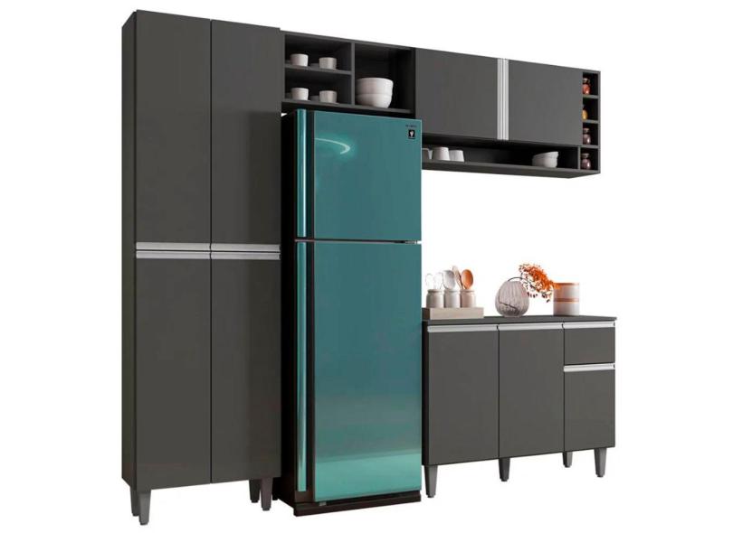 Cozinha Compacta Julieta Balcão 3 Portas + Paneleiro 4 Portas Cinza - Bela Móveis