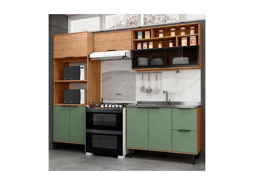 Cozinha Compacta Laura 7 Portas 3 Gavetas com Vidro 100% Mdf Freijo/Ja