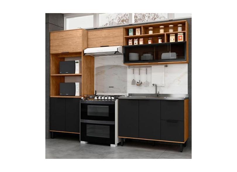 Cozinha Compacta Laura 7 Portas 3 Gavetas com Vidro 100% Mdf Freijo/Ne